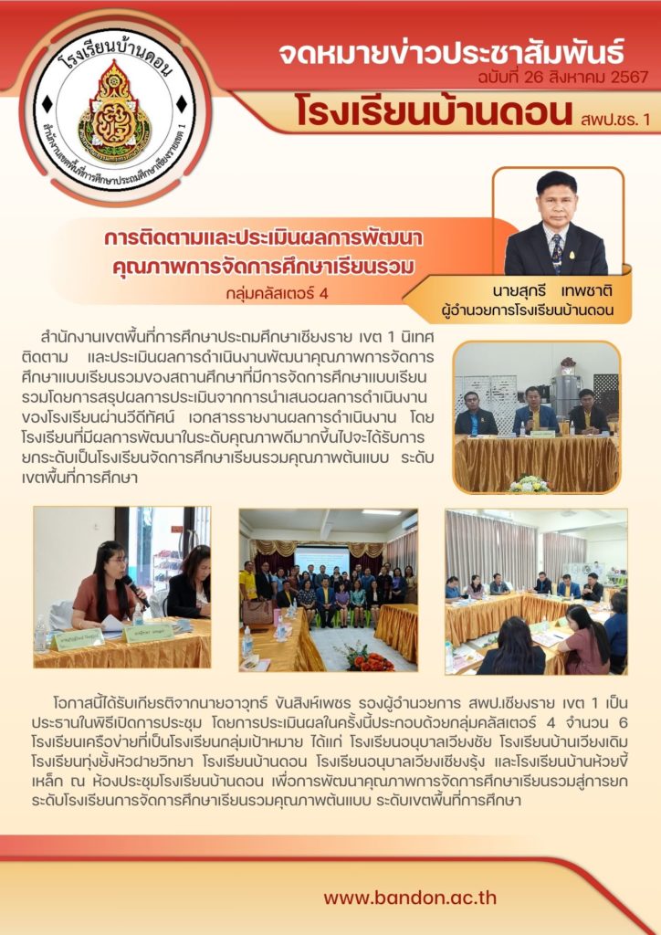 สำนักงานเขตพื้นที่การศึกษาประถมศึกษาเชียงราย เขต 1 นิเทศ ติดตาม และประเมินผลการดำเนินงานพัฒนาคุณภาพการจัดการศึกษาแบบเรียนรวมของสถานศึกษาที่มีการจัดการศึกษาแบบเรียนรวม