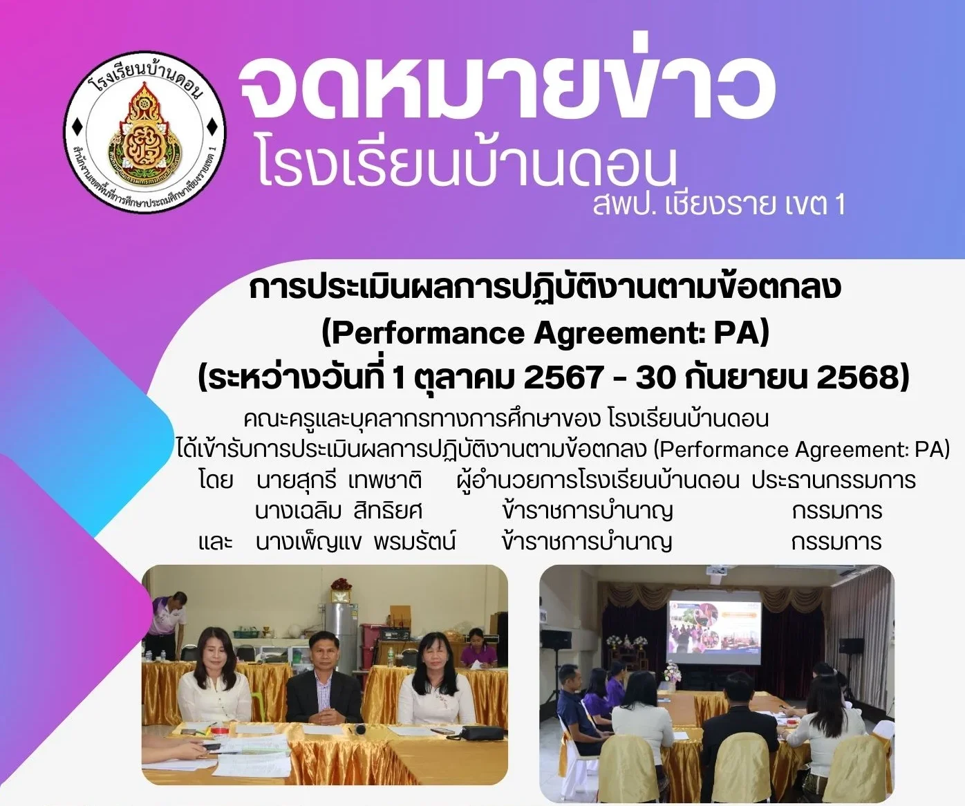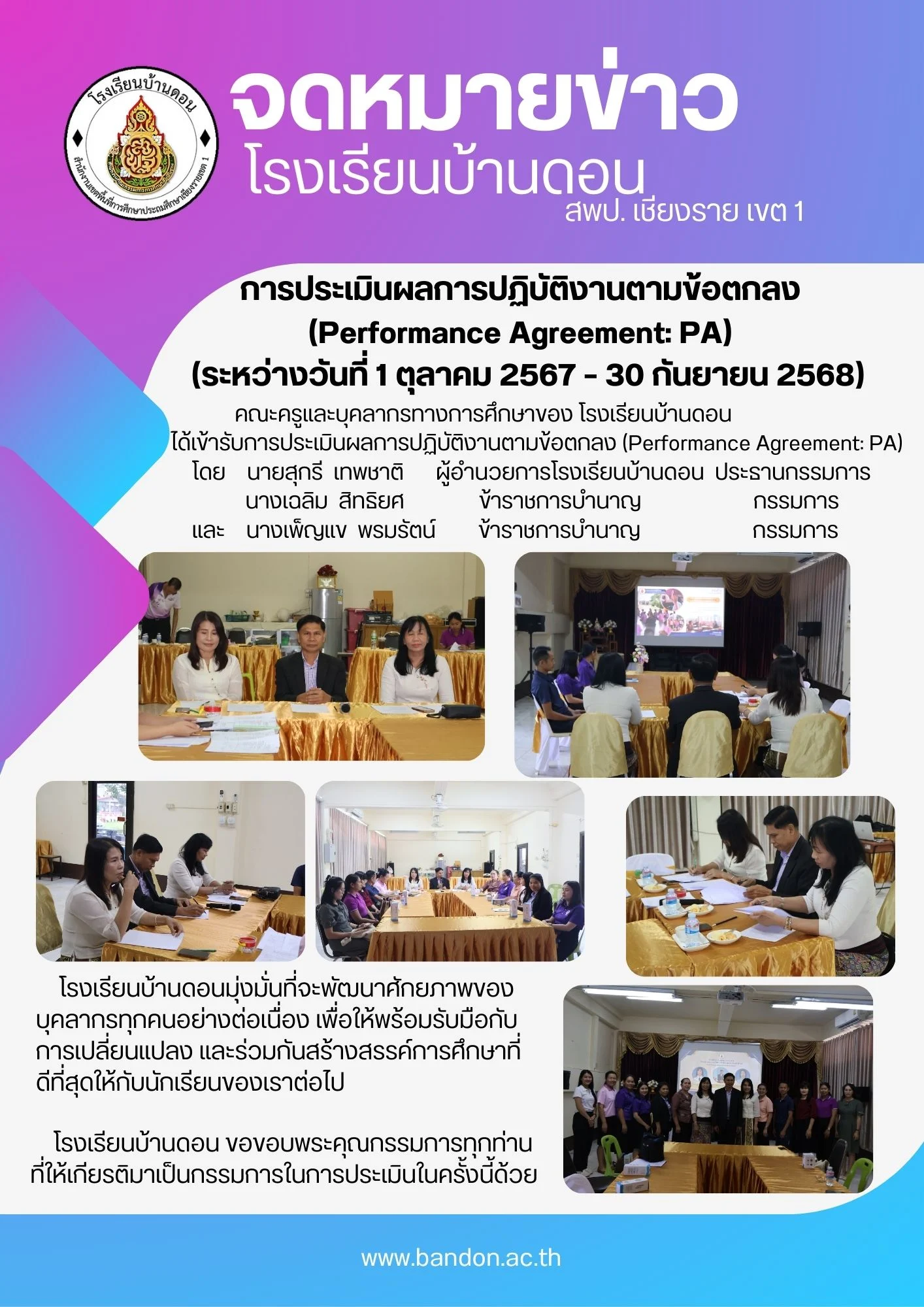 โรงเรียนบ้านดอนดำเนินการประเมินผลการปฏิบัติงาน (PA)
